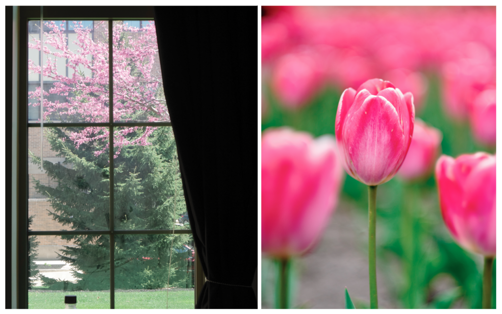 Time flies... 2021 has been unexpectedly busy. In some ways, I miss the COVID time. It seemed the time machine suddenly slowed down. Without many commitments and meetings, I enjoyed much-needed quiet time to read and think... With 2020 in the rearview mirror, we are back to a fast-paced "modern" society again. The calendar was filled quickly (yet again!). While we are focusing on chasing preset goals, we should not forget the beautiful things quietly brooding around us. Looking through the window from our lab, the refreshing "pink" signals that the exciting Spring is coming (finally to the Midwest!). People sometimes ask me, "How do you enjoy the weather in the Midwest? Too much snow, isn't it?" Yup, actually, we love the weather here. To be precise, we love the excitement of the seasonal changes that Mother Nature brings to us four times a year. That really makes life interesting. We are "kids" who are constantly longing for lasting beauty throughout the seasons.